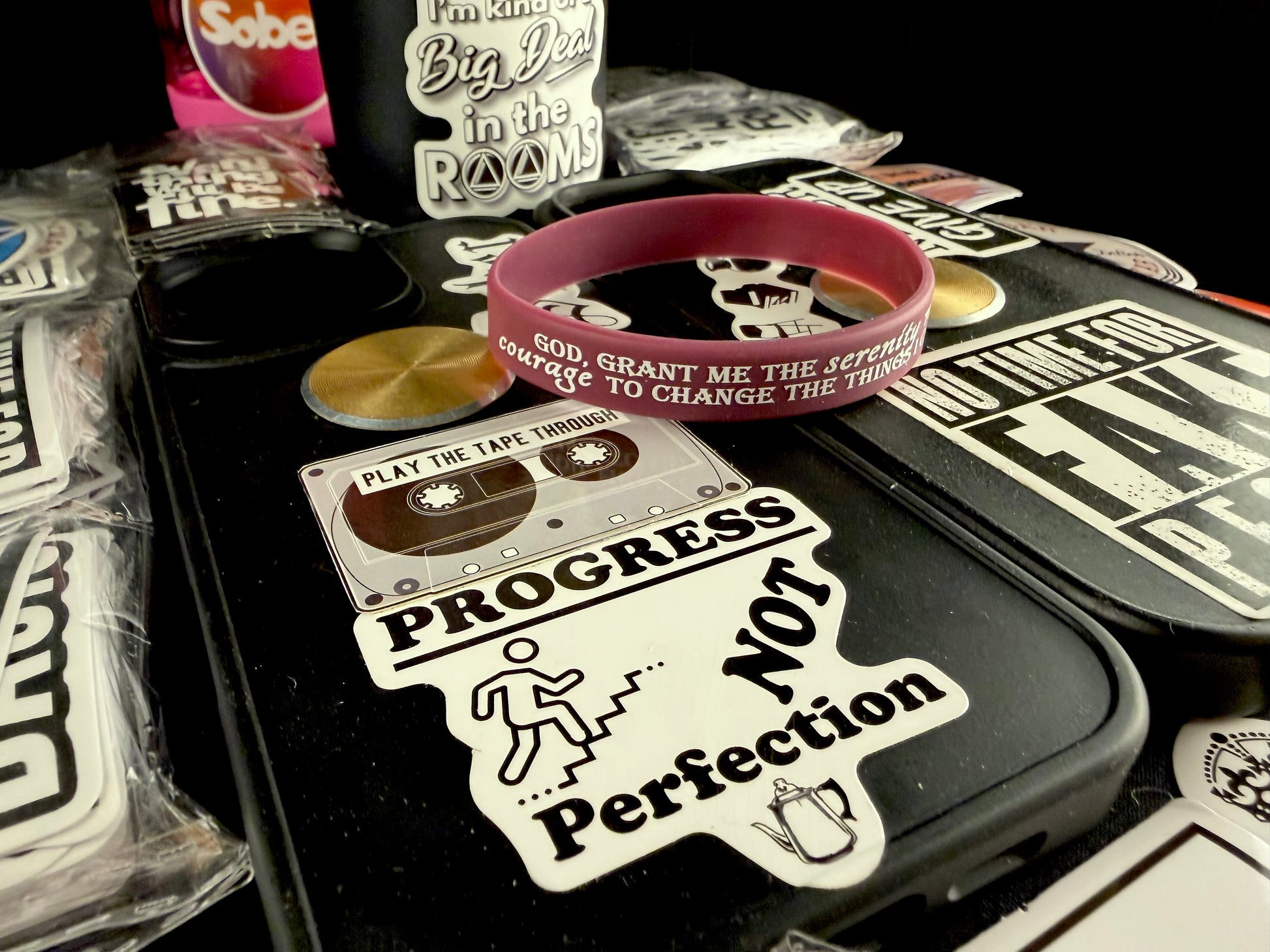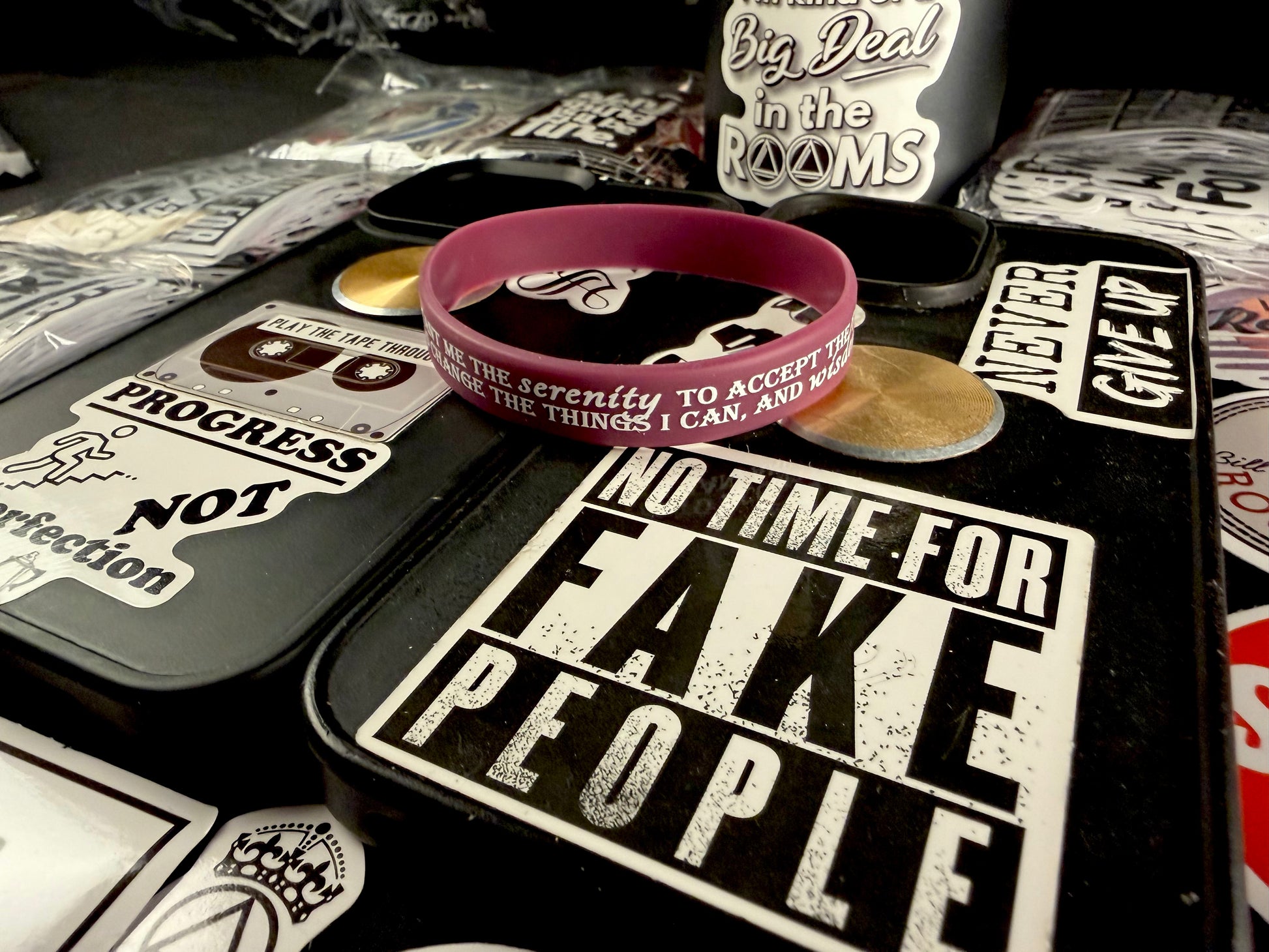 The Burgundy Thoughts Serenity Band offers a perfect fit for an 8" wrist, blending comfort with meaningful inspiration. Equipped with 10 recovery-themed stick-ons, it allows you to personalize your phone, water bottle, or laptop, keeping your path to serenity visible throughout the day. Crafted for durability, this subtle accessory serves as a constant reminder of your strength and dedication to lasting recovery, motivating you every step of the way. Embrace your journey with a stylish symbol of resilience and hope.