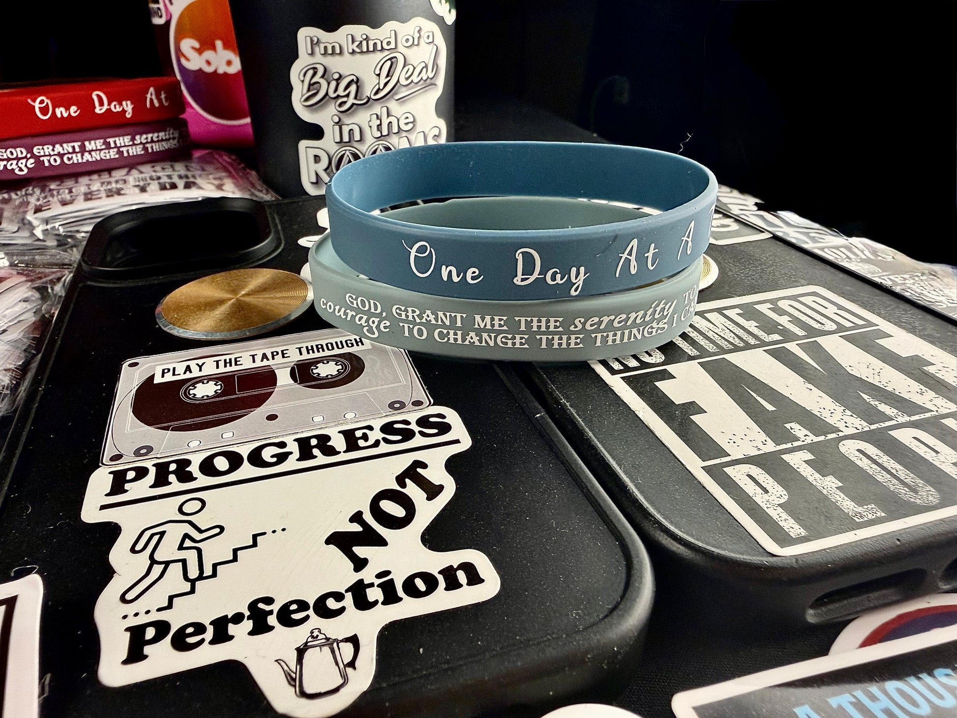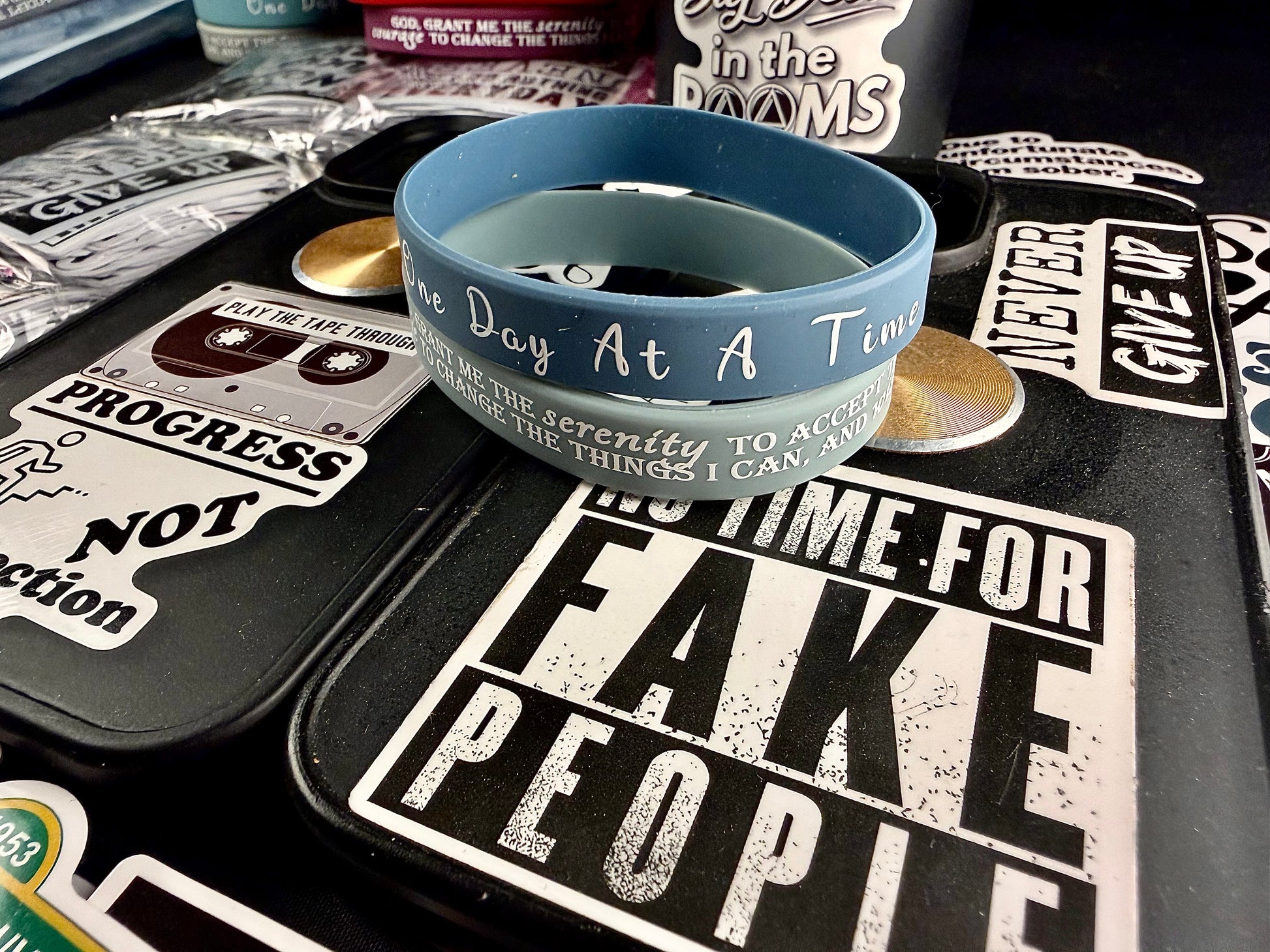 CKY Meets Nature One Day & Serenity Bandsππ»ππ Embrace your recovery journey with this powerful combo pack featuring sleek black wrist bands designed for men with anΒ 8" Wrist circumference. Each set includes 10 inspiring recovery and motivational stick-ons for Ur Phone, Water Jug, Laptop Ext to personalize your bands with daily affirmations and spiritual reminders. Perfect for staying grounded during challenging moments, these bands serve as tangible symbols of your commitment to sobriety and inner peace. Whether you're one day sober or celebrating years of progress, wear your strength with pride and let these meaningful accessories inspire both you and those around you. Colors May Appear Slight Different