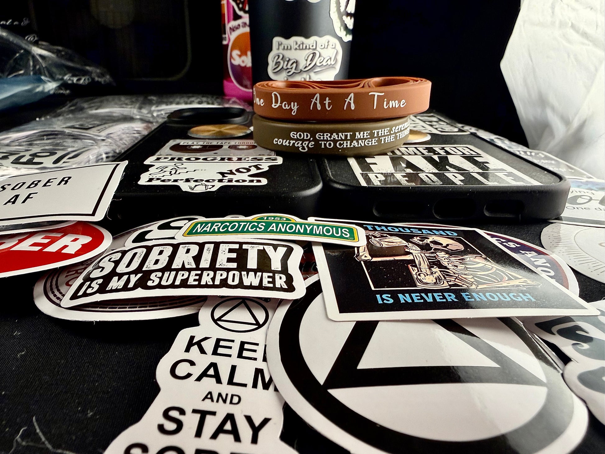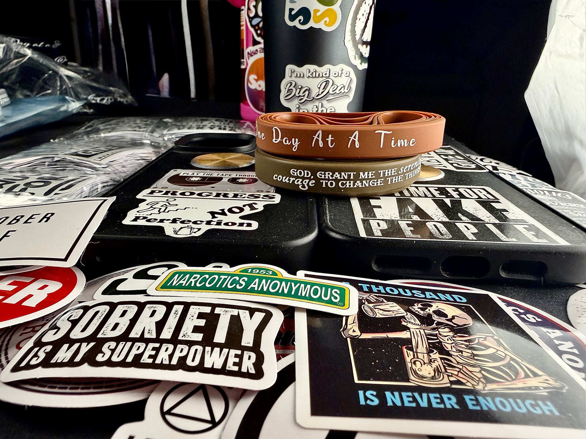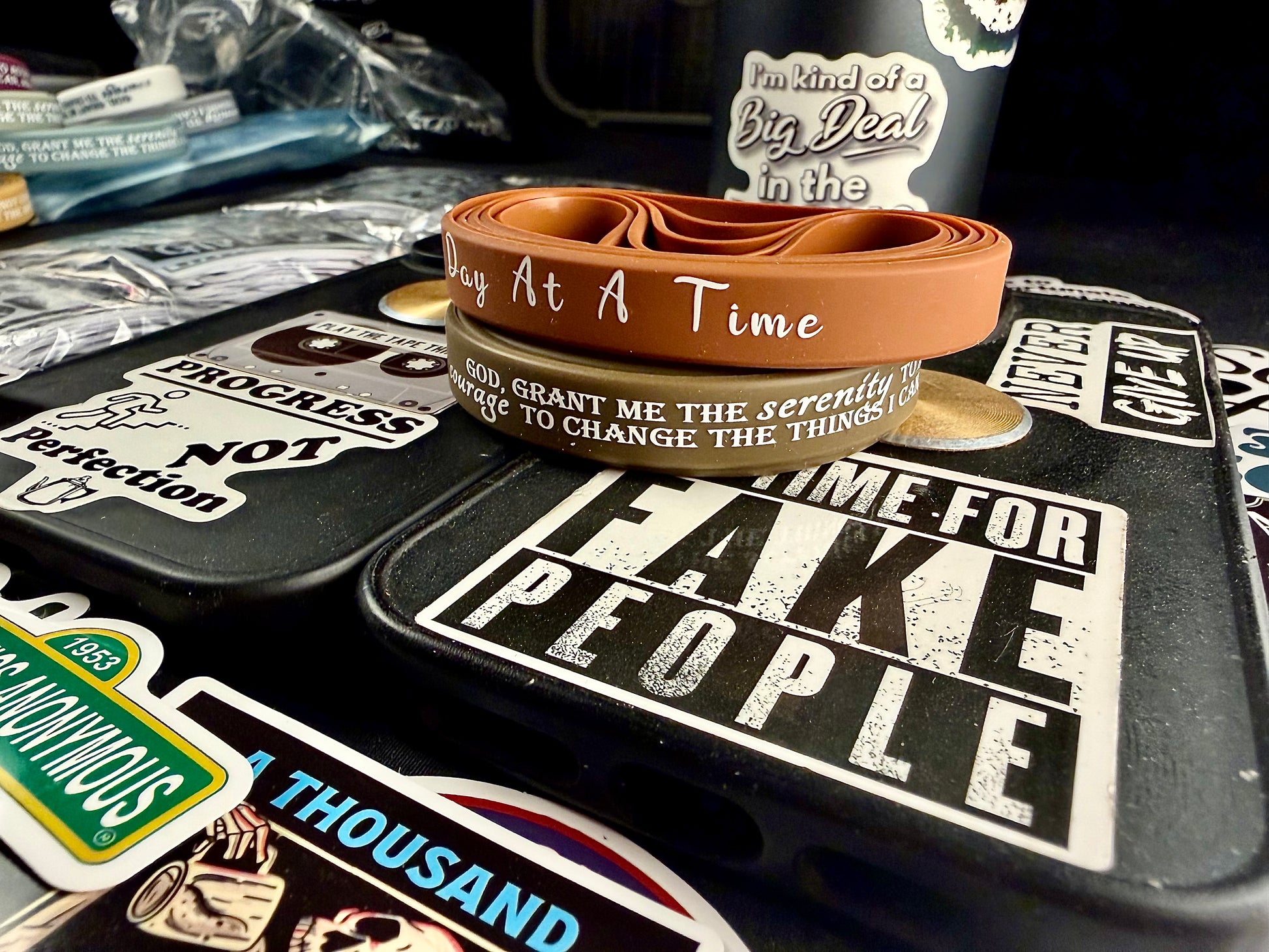 Down Brown One Day Serenity Bandsππ»ππ Embrace your recovery journey with this powerful combo pack featuring sleek black wrist bands designed for men with an 8" Wrist circumference. Each set includes 10 inspiring recovery and motivational stick-ons for Ur Phone, Water Jug, Laptop Ext to personalize your bands with daily affirmations and spiritual reminders. Perfect for staying grounded during challenging moments, these bands serve as tangible symbols of your commitment to sobriety and inner peace. Whether you're one day sober or celebrating years of progress, wear your strength with pride and let these meaningful accessories inspire both you and those around you. Colors May Appear Slight Different, Includes 1 One Day & 1 Serenity Band W/10 Recovery Inspirational Stick-ons