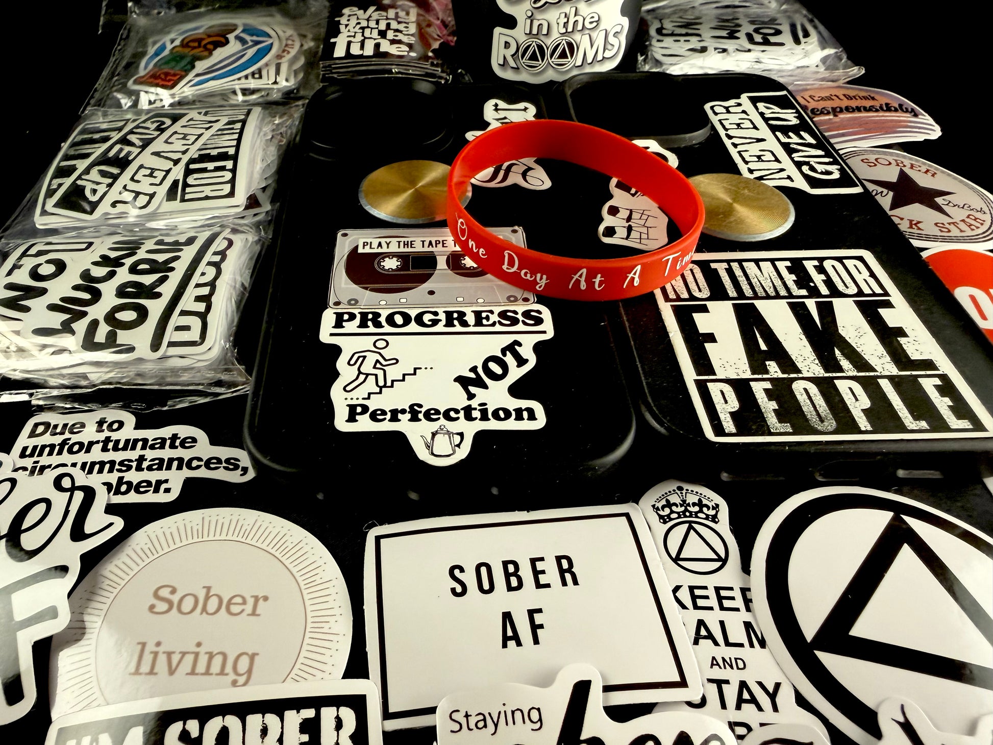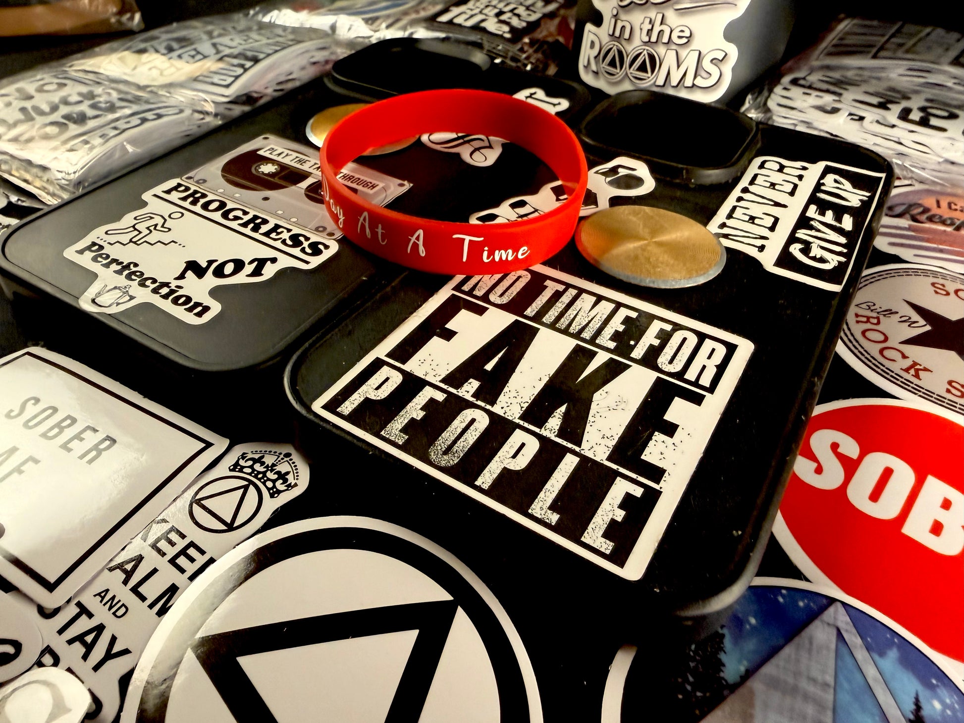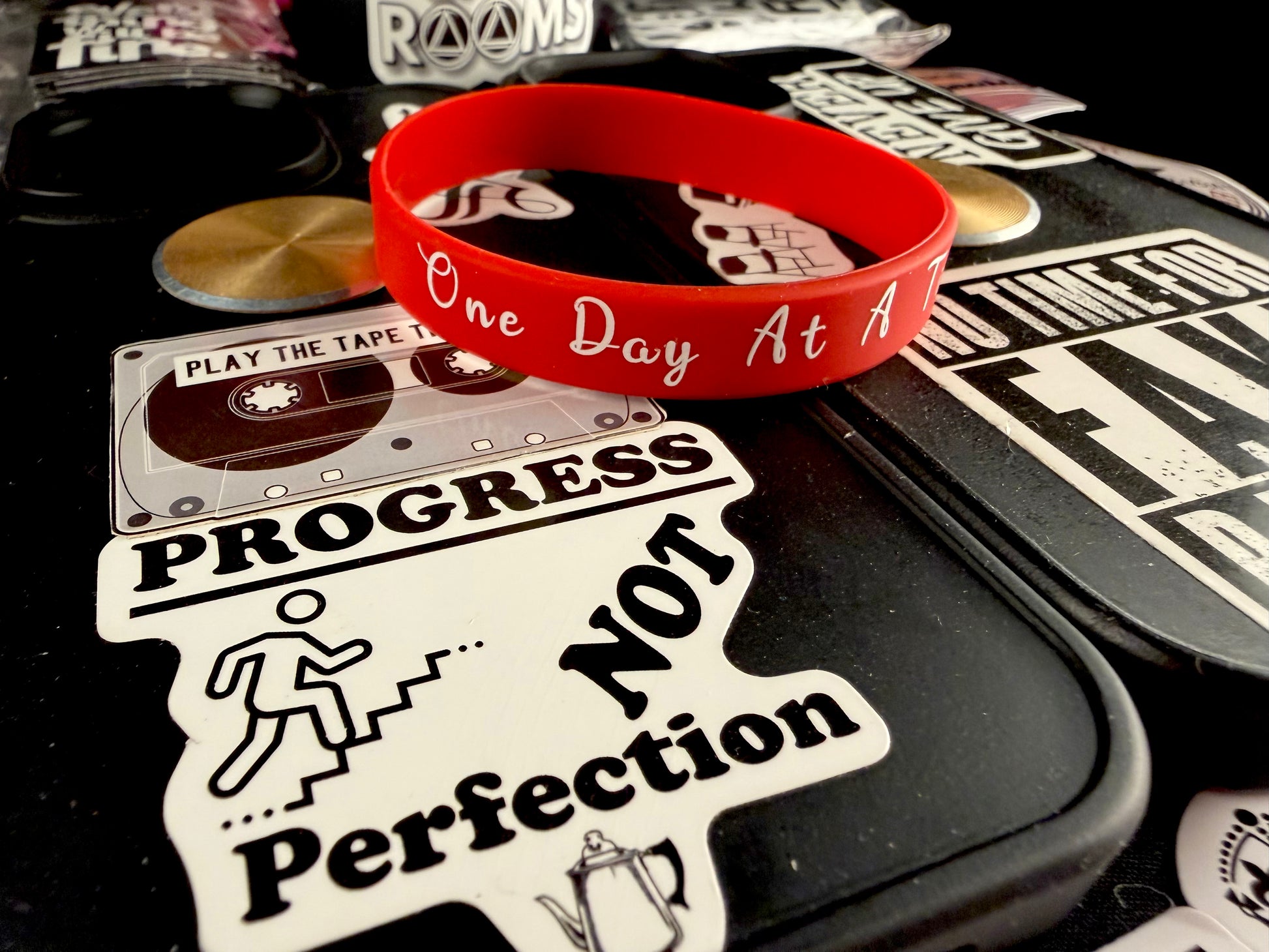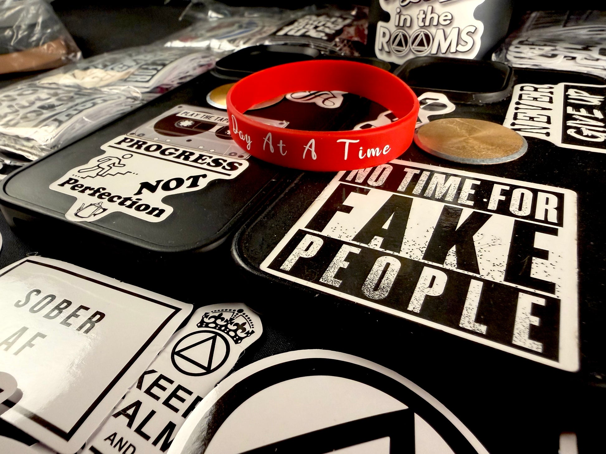 Carry your commitment with you everywhere. The Heart'z Red One Day Band serves as a powerful daily reminder of your sobriety journey and personal strength. Includes 10 Recovery & Inspiring Stick-ons—perfect for celebrating each milestone you've earned. A meaningful accessory that sparks conversations and connects you with others who understand the significance of staying true to yourself. Fits 8" wrist circumference. Massive in meaning, minimal in size.