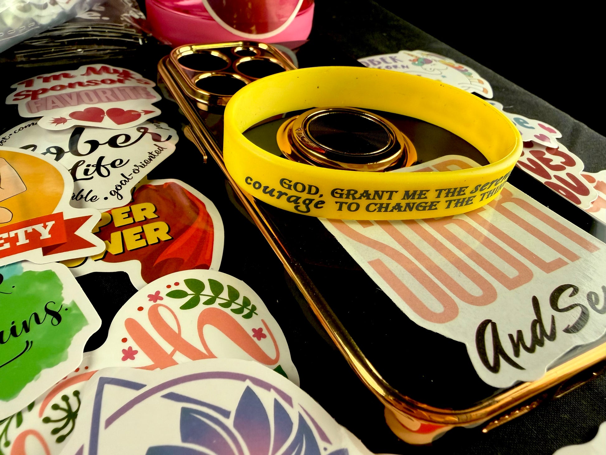 Her Yella Peace Serenity Band brings calm and inspiration to your daily journey. This vibrant yellow band 7.5" Wrist Circumference serves as a wearable reminder of inner peace and strength, perfect for anyone seeking mindfulness in their recovery or personal growth. The package includes 10 beautiful recovery and inspirational stick-ons, allowing you to personalize your phone, water bottle, laptop, and more with uplifting messages and designs. Carry your intention with you wherever you goβtransform your everyday items into powerful affirmations that support your wellness goals and celebrate your commitment to a better you.