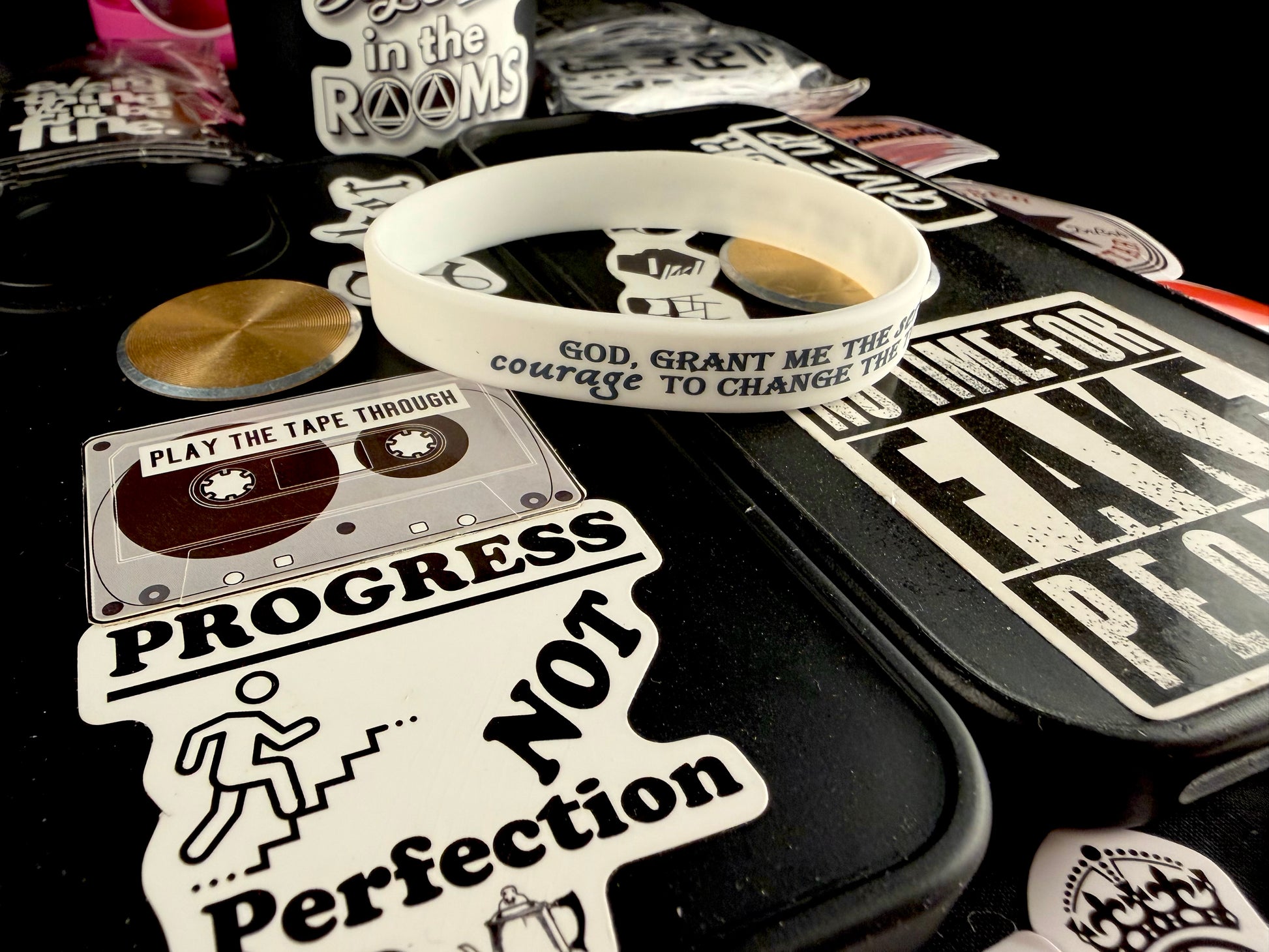 Discover the power of focus and resilience with the Pure Thoughts Serenity Band. Crafted to support your recovery, this band helps you stay grounded through every challenge. Included are 10 inspiring quote stickers, designed to decorate your phone, water jug, or laptopβconstant daily reminders to stay motivated and strong. Transform your surroundings into a source of encouragement and take confident strides toward your goals with this essential recovery bundle. 8" Wrist Circumference